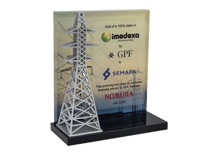 Corporate award for our client BTG Pactual celebrating a successful and important transaction in the energy industry.