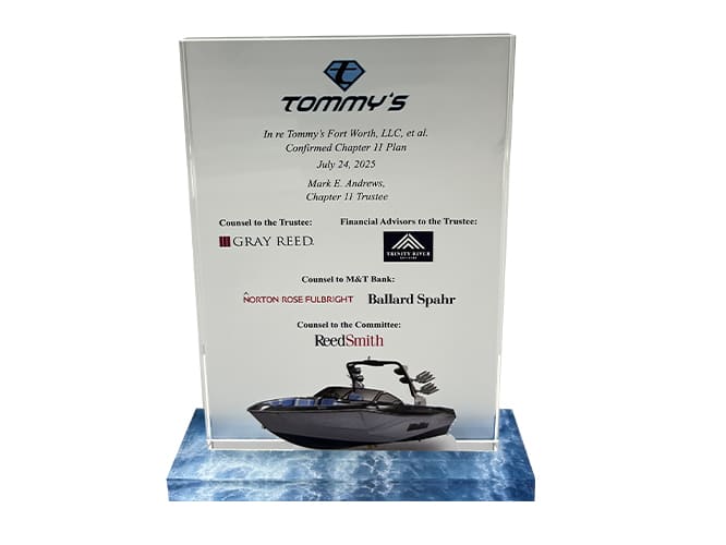 A bankruptcy law firm was looking for prison themed trophy. We walked through the process of comparison between a 3D Building replica or something more classy which is a 2D crystal award with reverse image printed on back.
