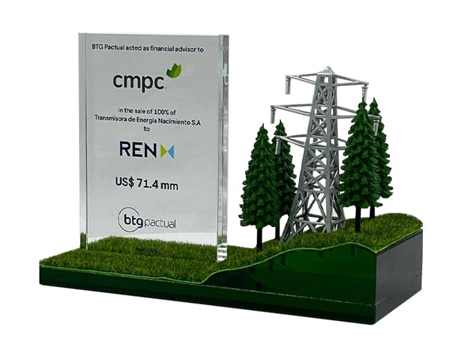 Premio corporativo para nuestro cliente BTG Pactual que celebra una exitosa e importante transacción de la industria energética.
