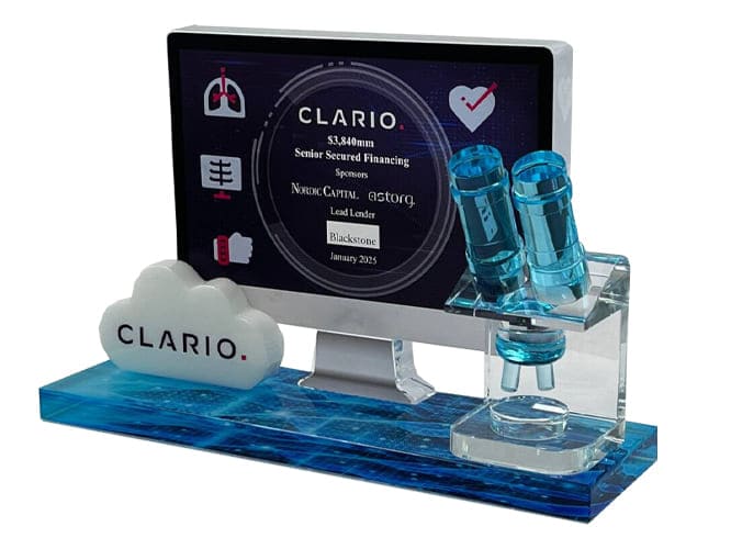 Un trofeo conmemorativo único el cual podemos observar una nube y telescopio en 3D, simbolizando los elementos claves de la transacción.