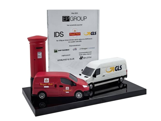 Aqu铆 dise帽amos el cami贸n y el buz贸n de Royal Mail, junto con el cami贸n de EP, todos impresos en 3D, para celebrar la adquisici贸n de Royal Mail por parte de EP Group (uno de los principales grupos industriales privados que operan en la Uni贸n Europea y el Reino Unido).